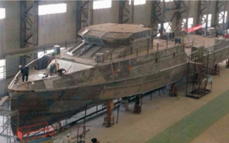 40米平臺(tái)工作船船體及上建材料;鋁合金總長(zhǎng):40米 型寬:8.2米 型深:3.65米 航速:27節(jié)主機(jī):4x1350KW